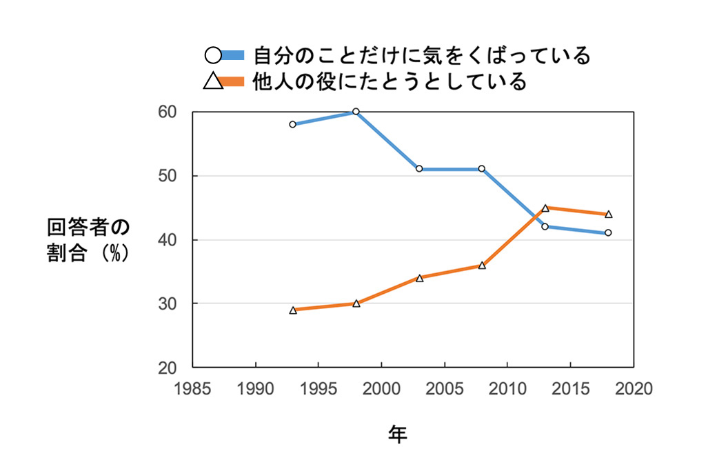 ですが、データを見てみると、変化のないように見える日本社会の中で、何かが起きているようです。