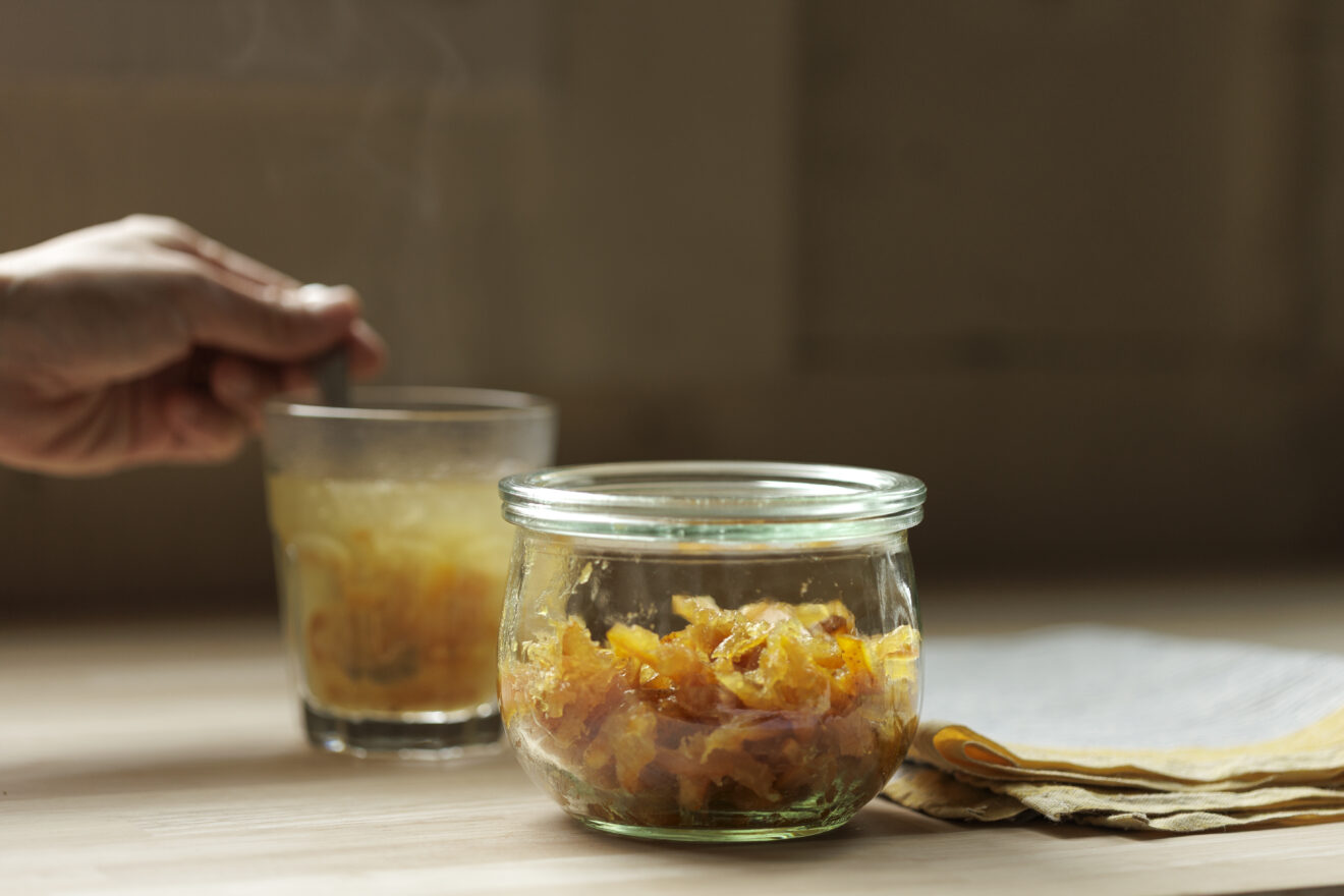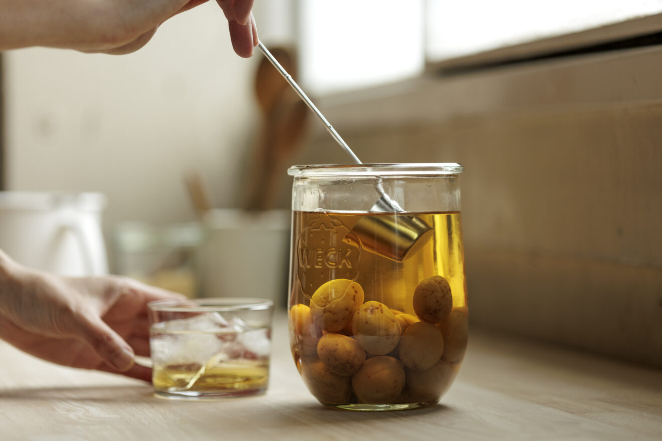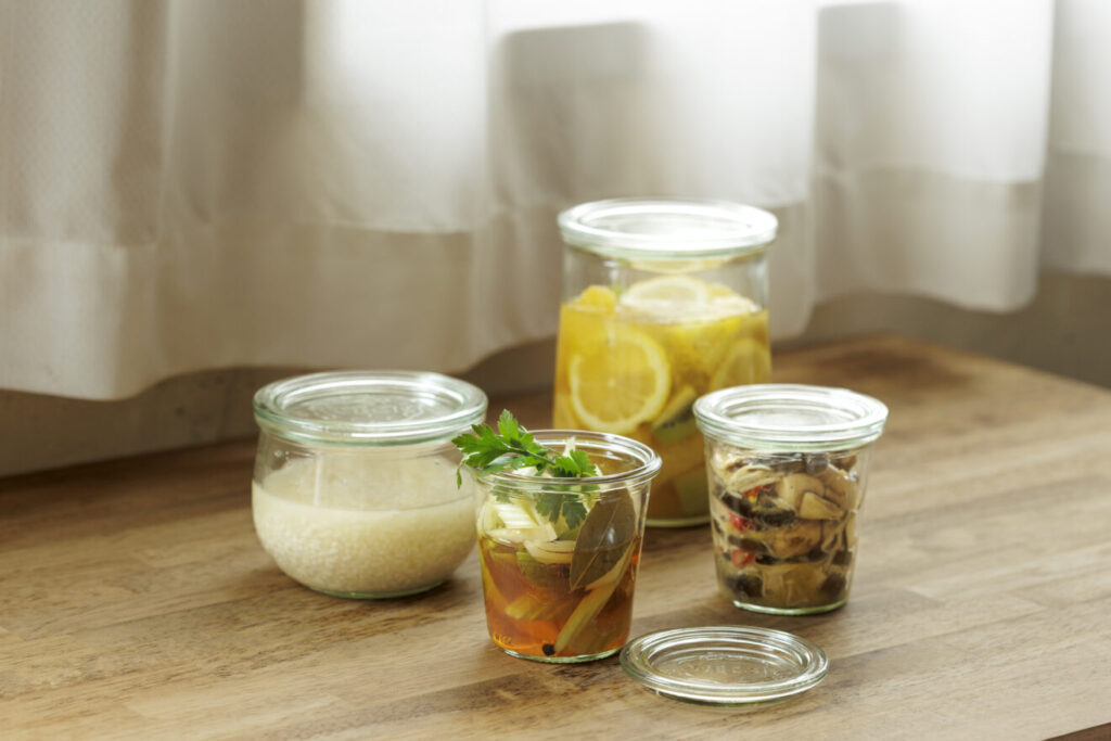 WECKのガラス容器は、煮沸消毒ができるので、シロップやジャムの保存にも安心。広口の瓶のつくりは、お玉や手で中身を取り出しやすく、仕込んだものの、なかなか手がつかずそのまま、ということにもなりません。