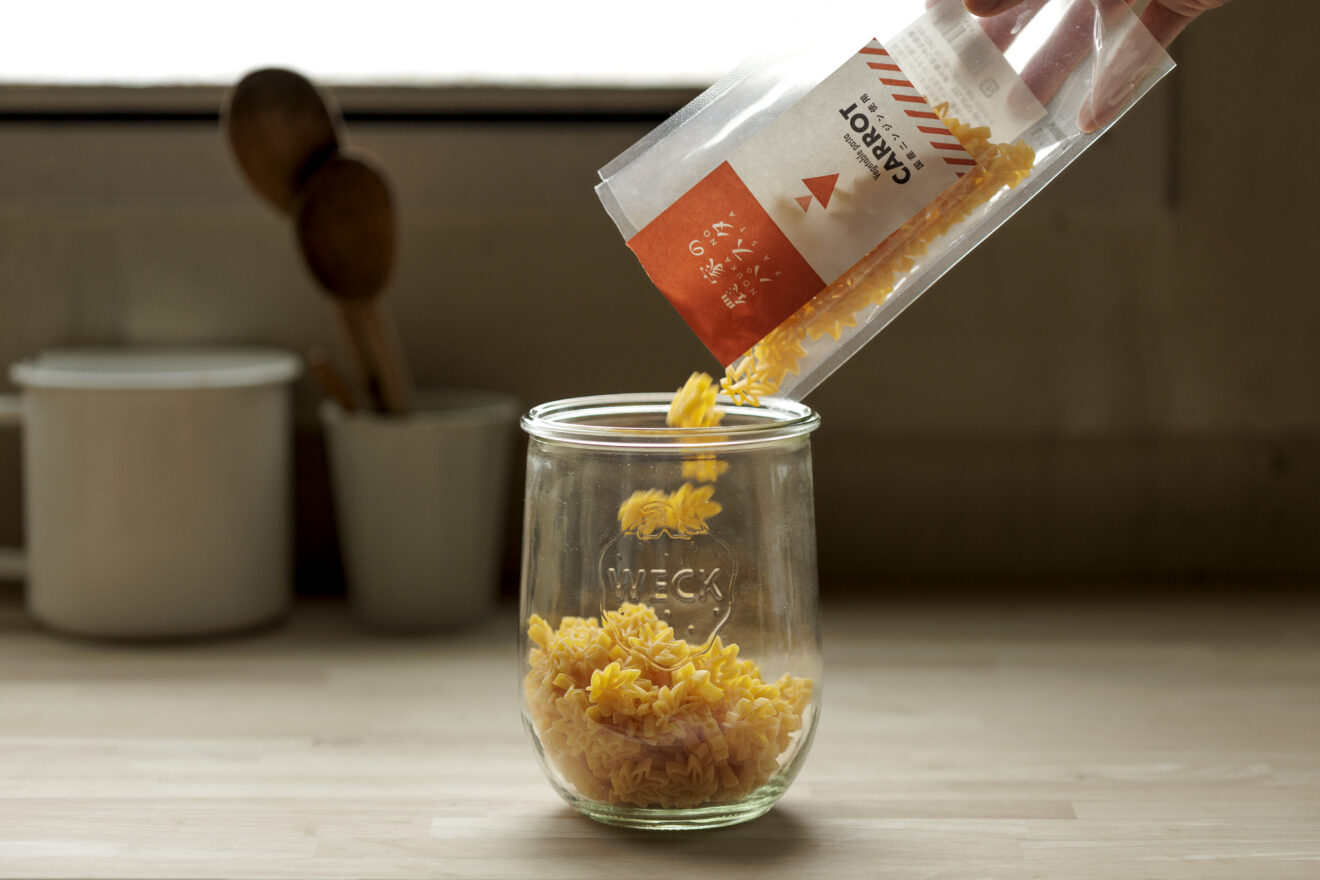 袋に入ったパスタやナッツ、コーヒー豆やお菓子なども、瓶に移し替えるだけで、まいにちの出し入れが、うんと軽やかに。