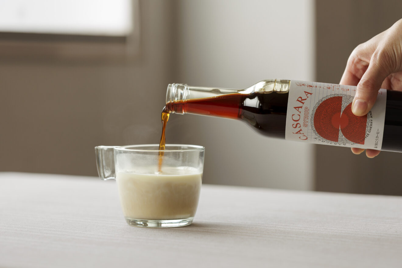 ミルクとカスカラシロップを混ぜたカスカラオレに、エスプレッソや濃く抽出したコーヒーを入れると、甘いカフェラテになります。同じコーヒーチェリーからできたカスカラとコーヒーをまるごと楽しめます。アイスコーヒーのシロップとして使っても◎