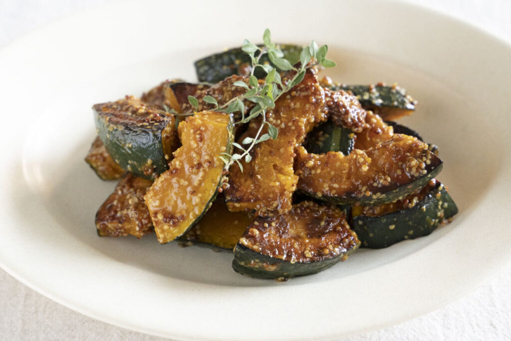 ※オーブンがない場合は、かぼちゃを0.5mm~1cm幅に切り、フライパンで火が通るまで焼いてから、調味料と混ぜ合わせてください。