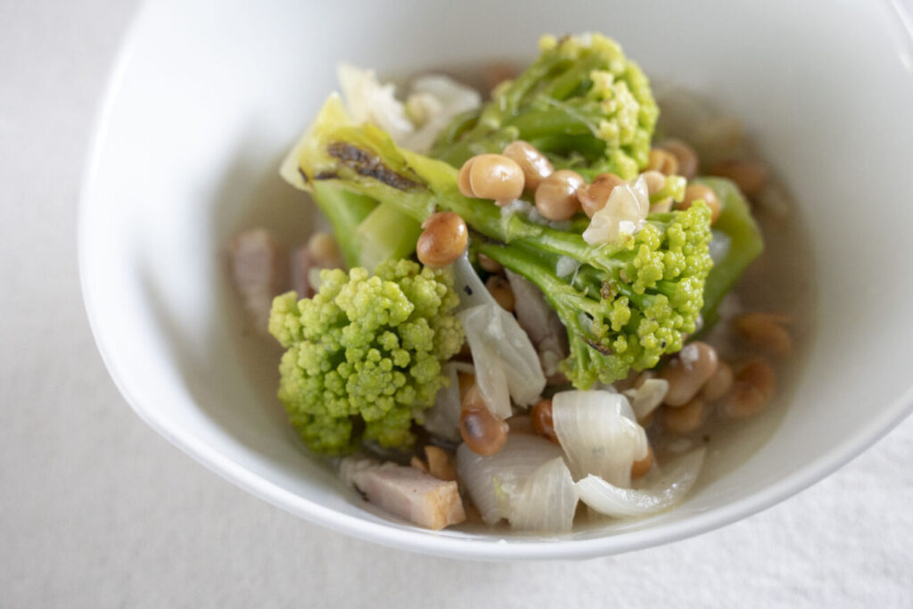 大豆とカリフラワーは煮る前にこんがり焼き色をつけることで、香ばしさが加わり、味わいが増します。