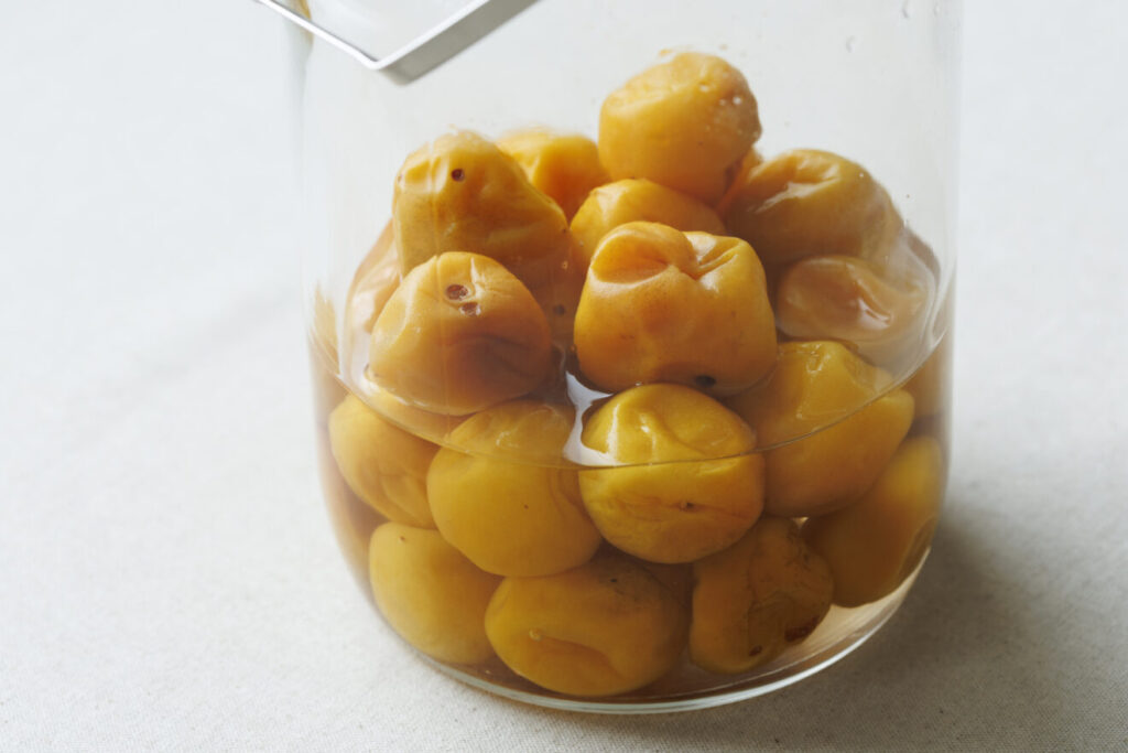 梅干しをつくるときも、まずは梅の塩漬けをします。
