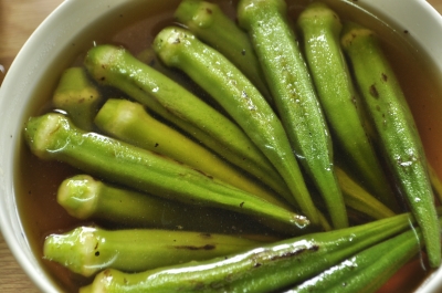 おくらの焼きびたし。お世話になっている冨田ただすけさんの新刊『家族の顔を見ながら、毎日ごはんを食べたいと思った』にも載ってます。旬ですねぇ~