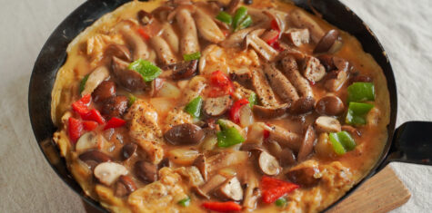 お野菜たっぷり、彩りのきれいなオープンオムレツ。ふわふわの卵に、しゃきっと食感のあるきのこやピーマンが重なり、りっぱな食べごたえです。 具材はほかにも、ほうれんそうやじゃがいも、トマトなど、お好みのものを。 材料(4~6 … 続きを読む 彩り野菜のオープンオムレツ