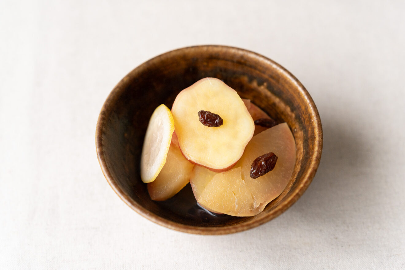 さつまいもとりんごのおいしい組み合わせ。レモンを加え、すっきりとした甘さに炊き上げます。