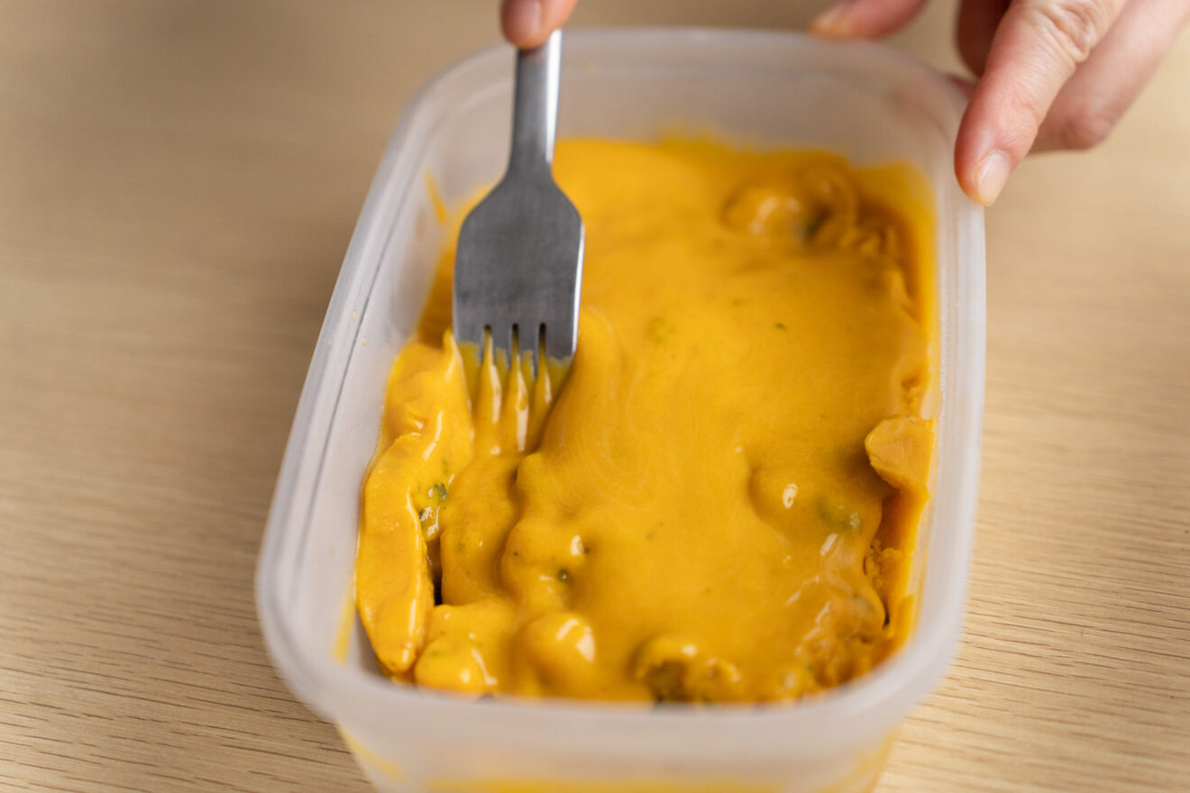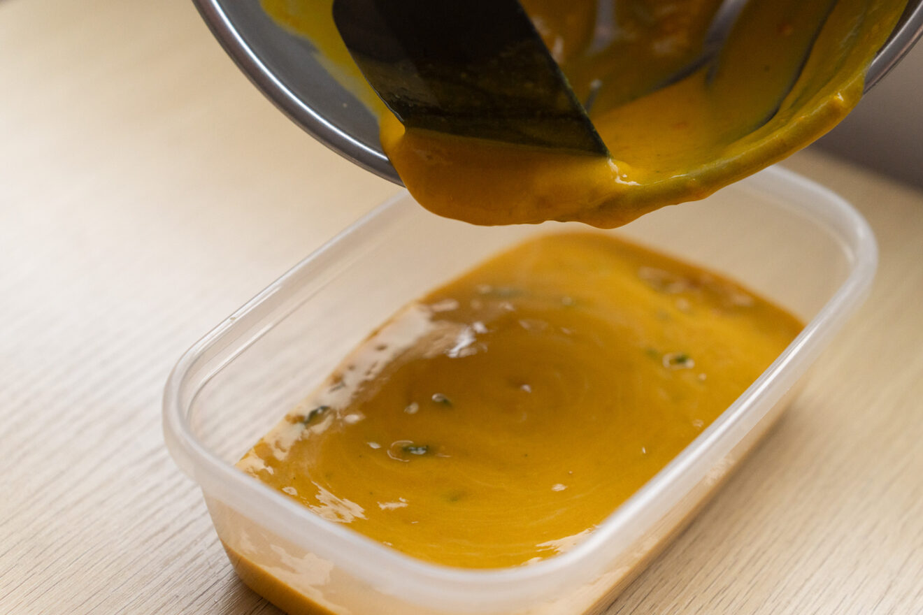 全体がよく混ざったら、保存容器に移し、冷凍庫に入れます。