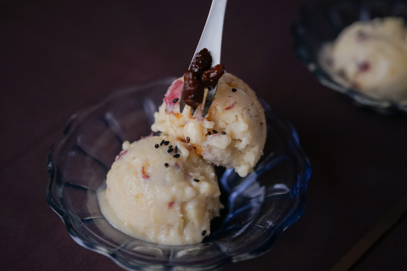 さつまいもと甘酒の甘みを生かした、さっぱりとした口どけの豆乳アイス。