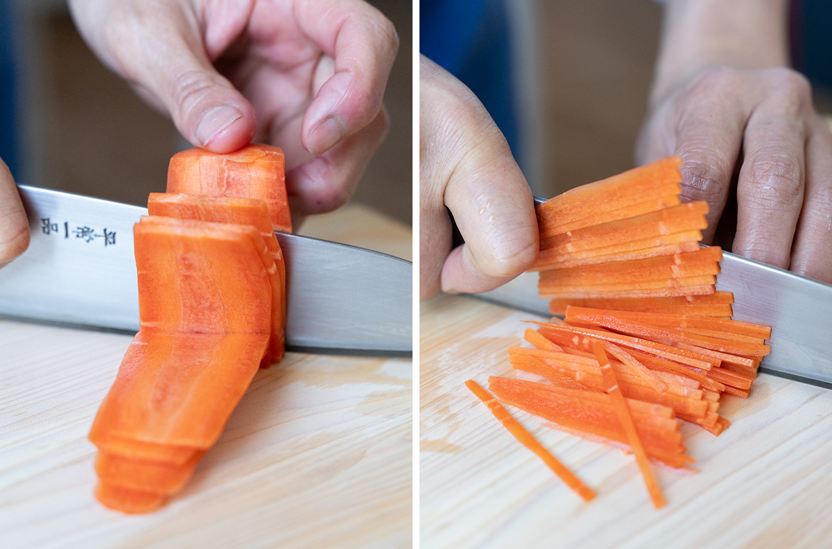 にんじんも、同様の千切りにします。