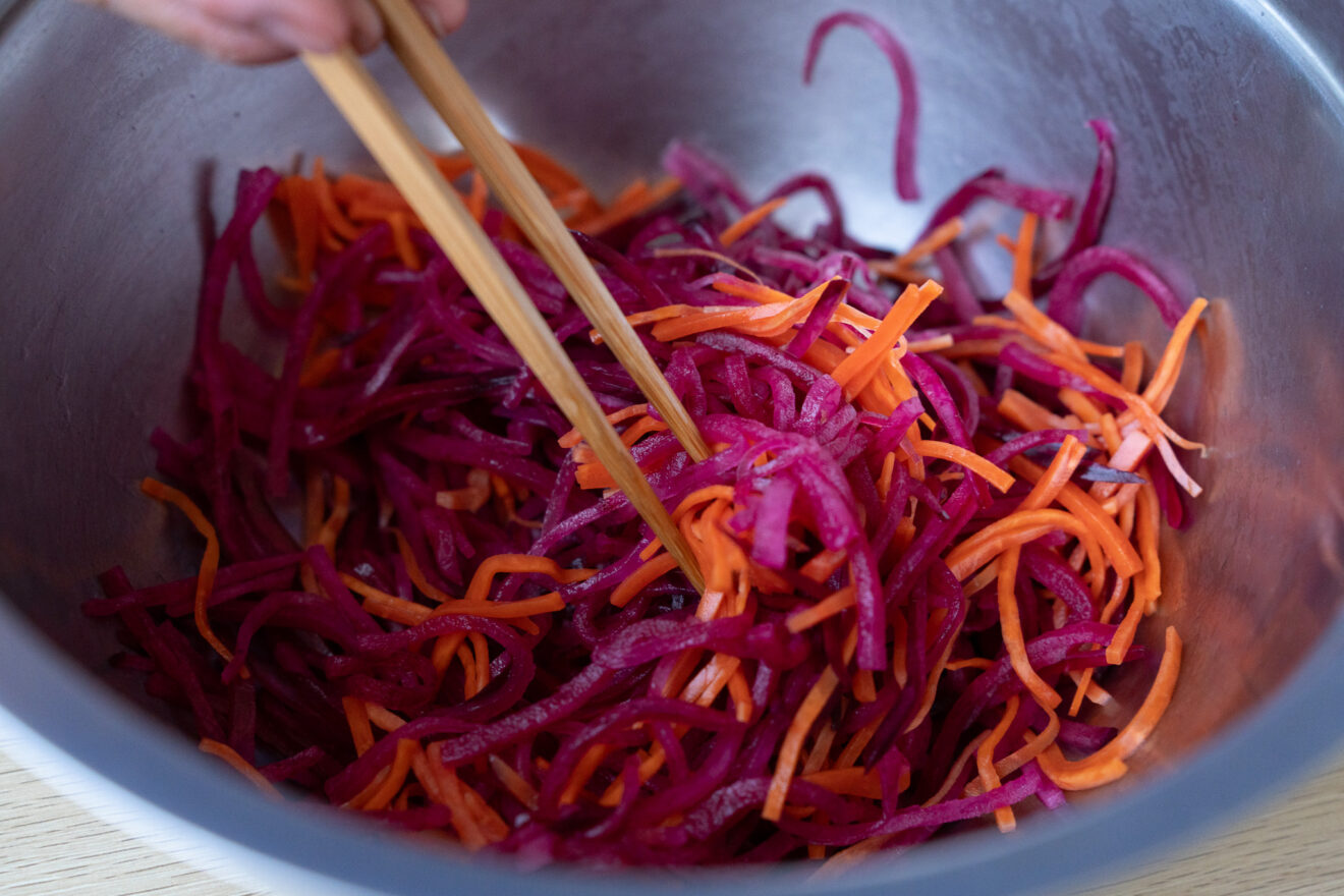 ※ただし、紅だいこんの色味がにんじんに移るので、にんじんを入れてつくる場合は、なるべく早めに召し上がっていただくのがおすすめです