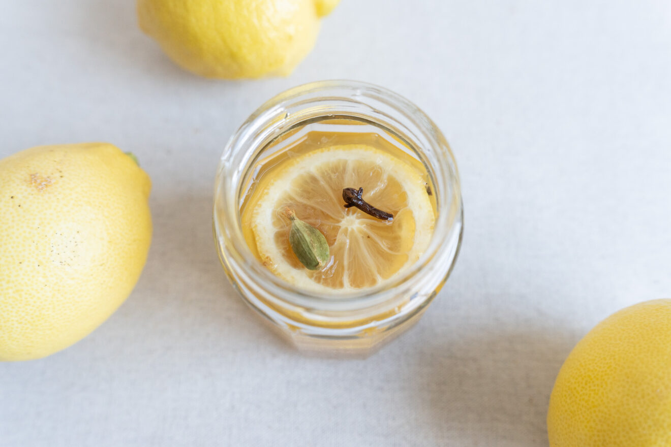 2)清潔な保存容器に、レモンとはちみつを交互に入れます。スパイスはちみつレモンの場合は、スパイスも交互に入れます。半日ほど置き、レモンの果汁とはちみつがなじんだらできあがりです。