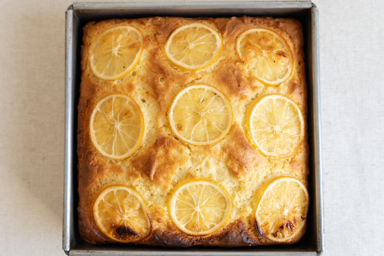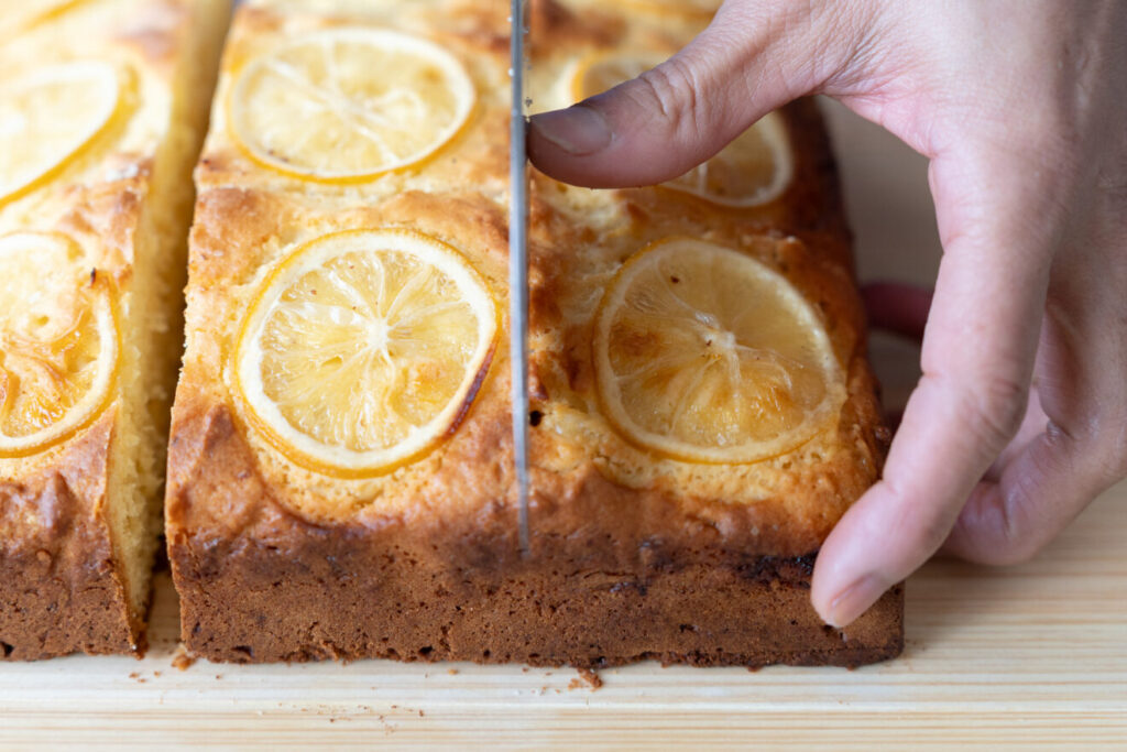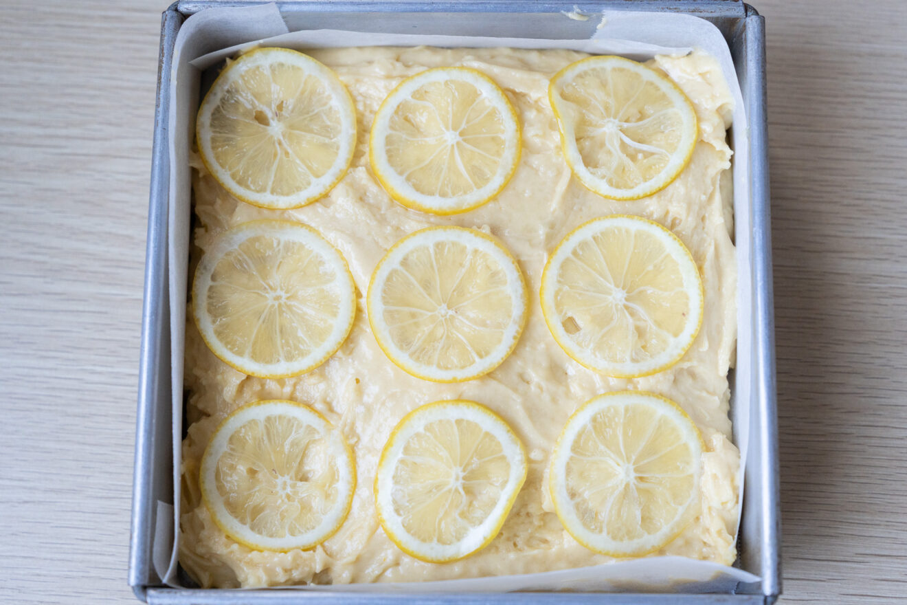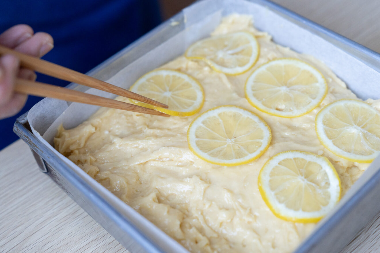 はちみつ漬けにしたレモンは、半分を刻んで生地に練り込み、半分をトッピングに。