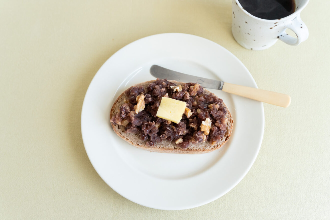 3)トーストしたパンに、2のくるみあんこを塗ります。お好みでバターをのせても。