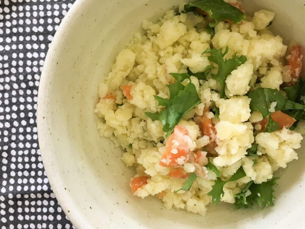 4)じゃがいも、にんじん、ビターチコリをふんわり混ぜあわせます。