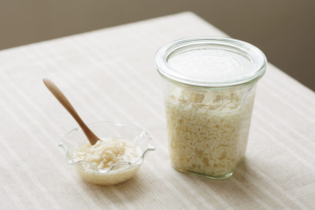 夏場、冬場で発酵期間の目安が異なります。米糀の形がつぶれて、とろっとお粥のようになったら完成です。