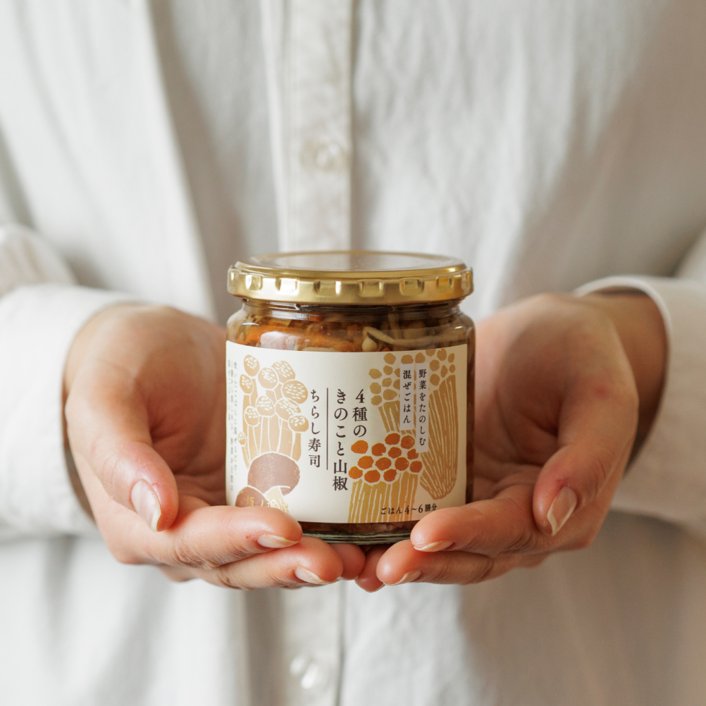 坂ノ途中のオリジナル商品として登場した、「野菜をたのしむ混ぜごはん」。いろいろなお野菜やきのこの味わいが、一瓶にたっぷり詰まっています。
