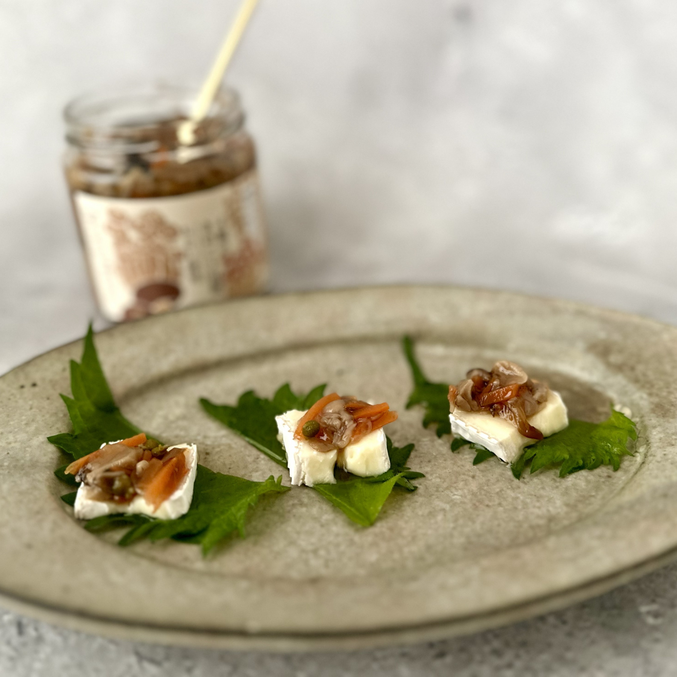 大葉とチーズの上に、混ぜまぜごはんの素をのせてパクリ。おいしい。さらにはちみつをかけてみたら、ピザのクアトロフォルマッジのようでおいしい……!こういう和がベースのチーズのおつまみが、たまらなく好きなんです。(@nakayaboiさん) |