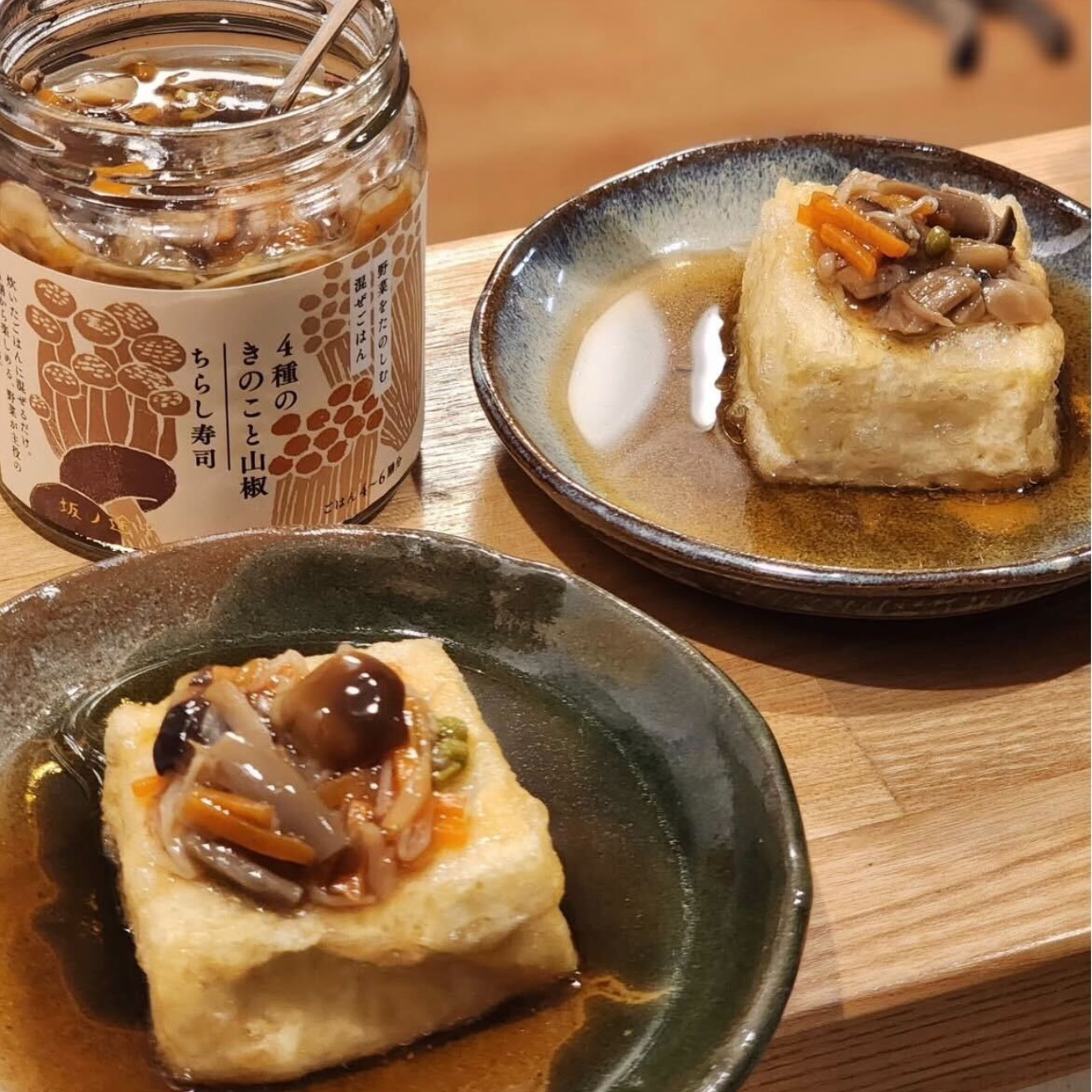 山椒の実も入っているので、食べた時の風味が最高! 揚げ出し豆腐のトッピングにしてみました。ちらし寿司の素なだけあって、ほどよい酸味で後口さっぱり。次はいなり寿司にこれを使った混ぜごはんを詰めて食べてみたいです( @tama84528 さん) |