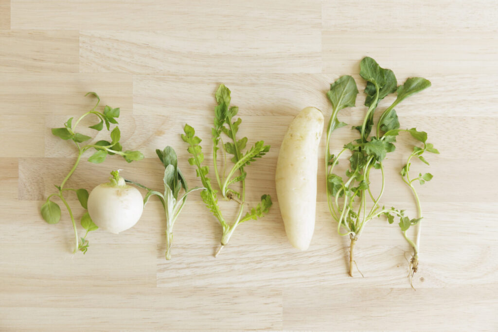 アブラナ科の野菜、ダイコンの別名です。すずなと同じく消化酵素やビタミンCが豊富で、胃に優しい野菜の代表格。葉の鉄分は野菜の中でもトップクラス。葉も根も食べてくださいね。