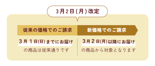 3月2日(月)のお届け分より、下記の価格となります。※すべて税込