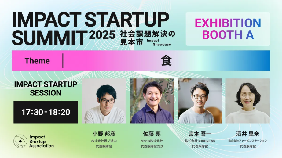 株式会社坂ノ途中の代表 小野邦彦が、2025年10月14日(火)にインパクトスタートアップ協会が主催する「IMPACT STARTUP SUMMIT 2025」へ登壇します。