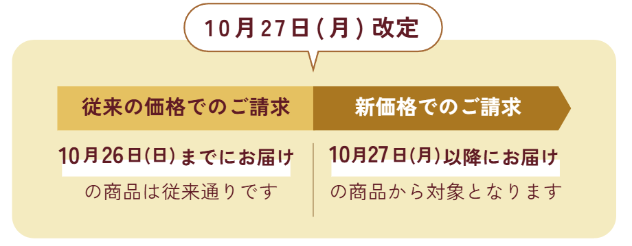 10月27日(月)のお届け分より、下記の価格となります。※すべて税込