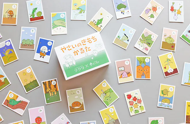 野菜のこと、畑のこと、自然のことを、いつもとは違う切り口で、親子で一緒にまなぶことができるかるたです。デザインとエンジニアリングで企業の課題解決をする株式会社おいかぜさんと協力して、子どもの「まなび」と「あそび」を考えながらつくりました。