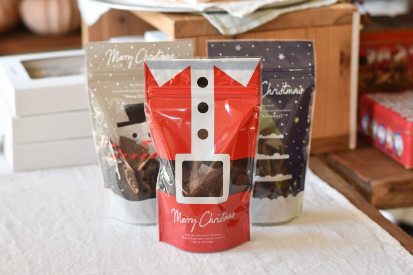 今回はクリスマスバージョンのブラウニーをご紹介。サンタクロースやツリー、雪だるまのパッケージがクリスマス気分を盛り上げてくれます。
