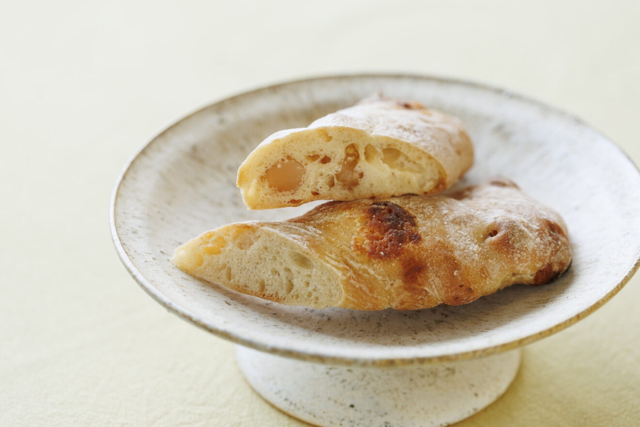 寒い時期がおいしい、徳島産の海苔「阿波ぬら」を使用したチャバタ。米油をつかうことで軽い仕上がりにしています。中はもっちりとしていて、噛めば噛むほど心地よい磯の香りが広がります。
