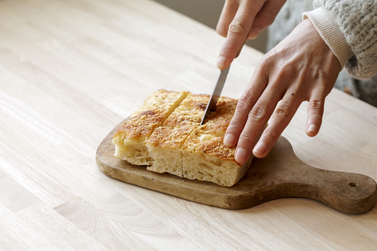すぐに食べない場合は、届いたらすぐにスライスして、1枚ずつラップで包み、冷凍庫へ。食べる直前に冷凍庫から取り出し、トースターで5~6分焼きます。