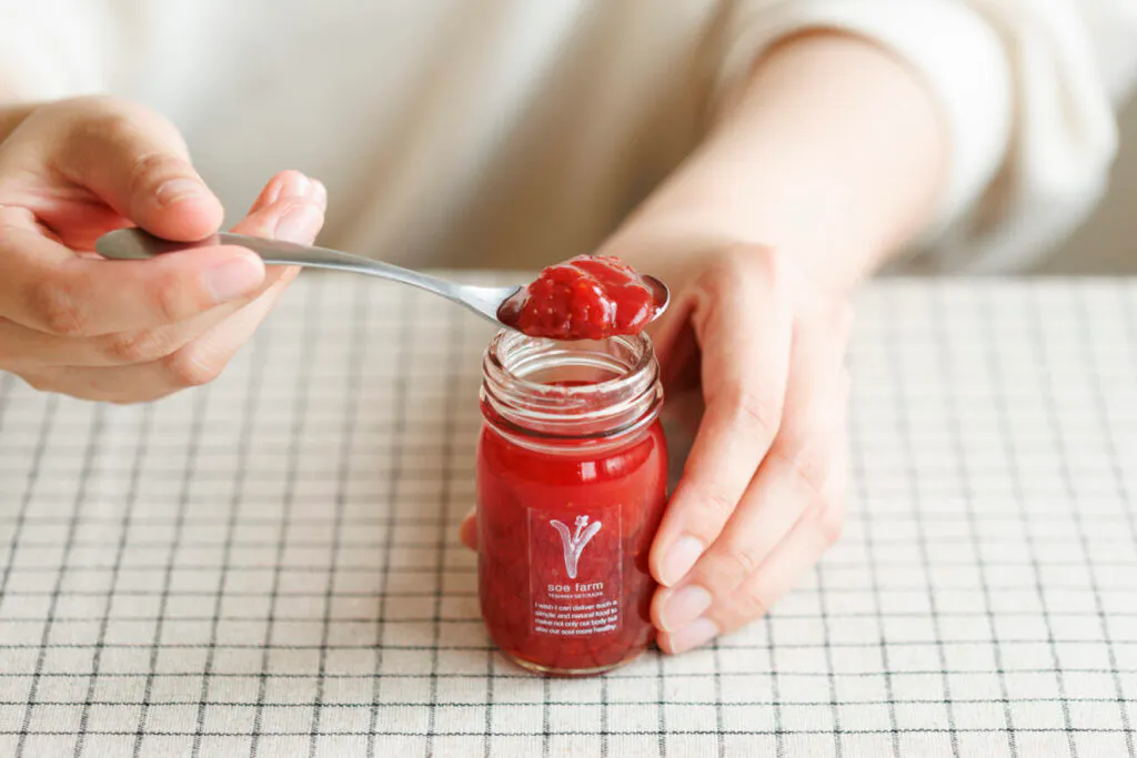瀬戸内海に浮かぶ、香川県の小さな島・豊島にあるsoe farmさんから届いた、うっとりするような赤色のいちごジャム。