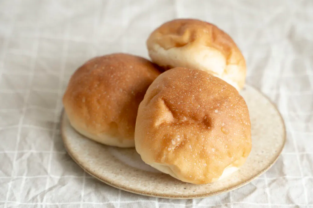 ふんわりやわらかい、シンプルな丸パンです。そのままでも、ジャムやコロッケなどの具を挟んでも。お好みに合わせて、いろいろな食べ方でお楽しみください。