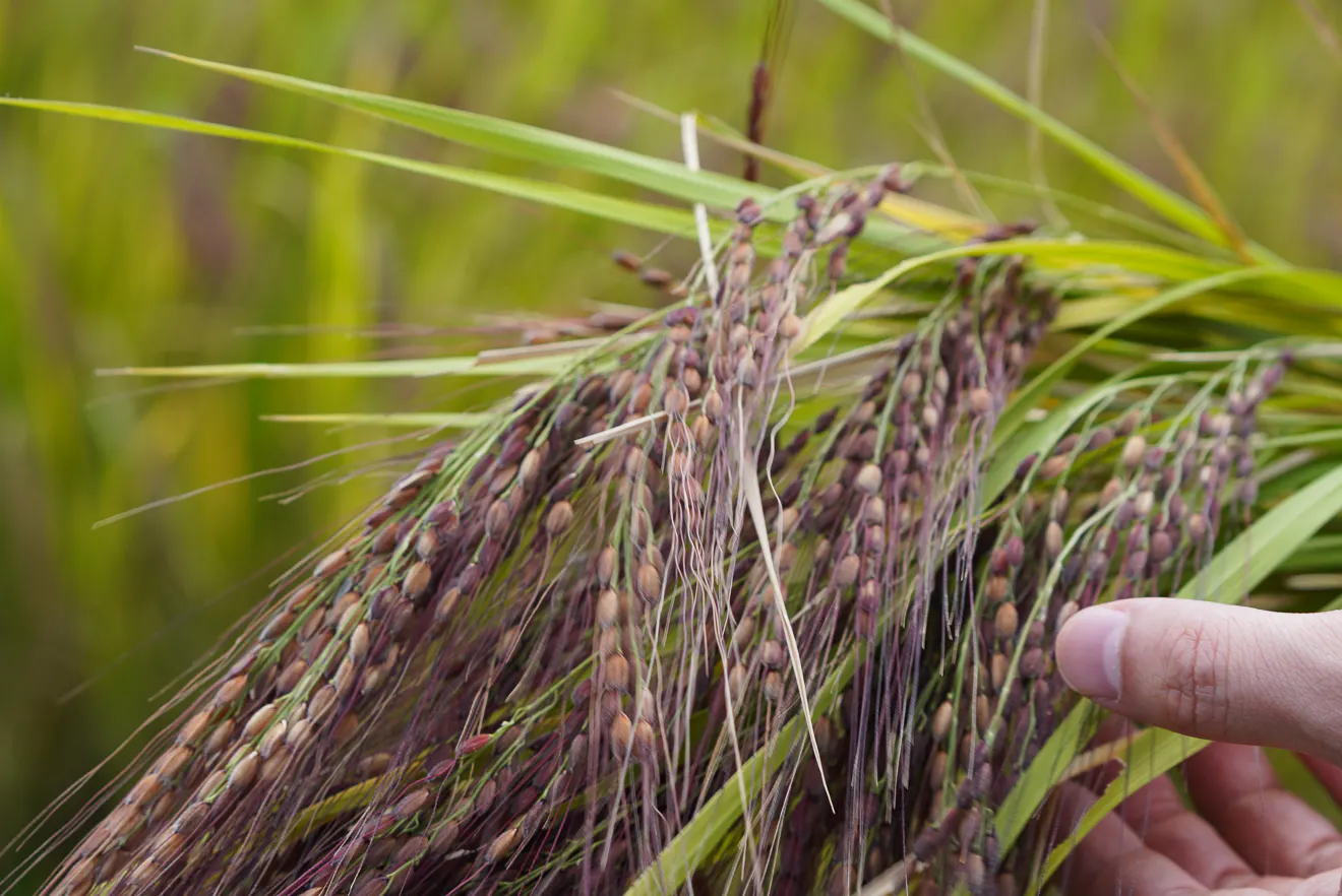 理由は、味がよいのはもちろん、稲の生命力がつよく、化学合成農薬や化学肥料に頼らない農法でもよく育つから。どこか野性的で、草との競合や病害にも負けにくいのだそう。