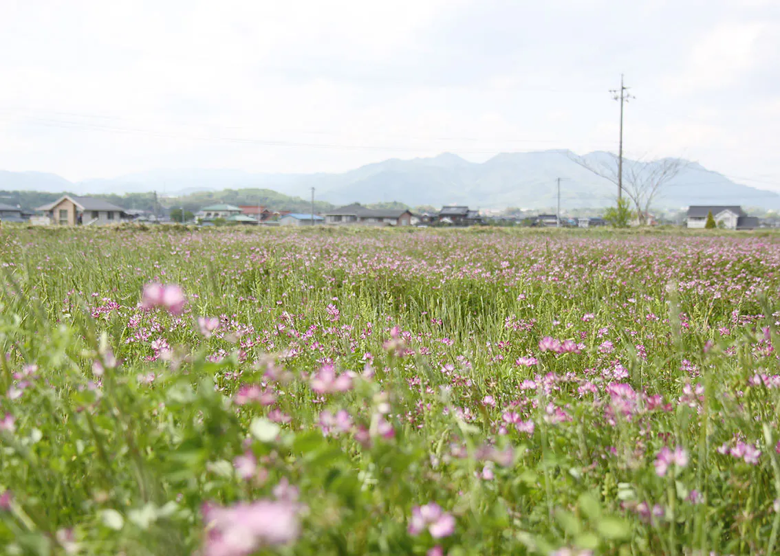田んぼに咲いたれんげを土にすきこむ以外はなんにも加えず、自然な土の力だけでつくられています。