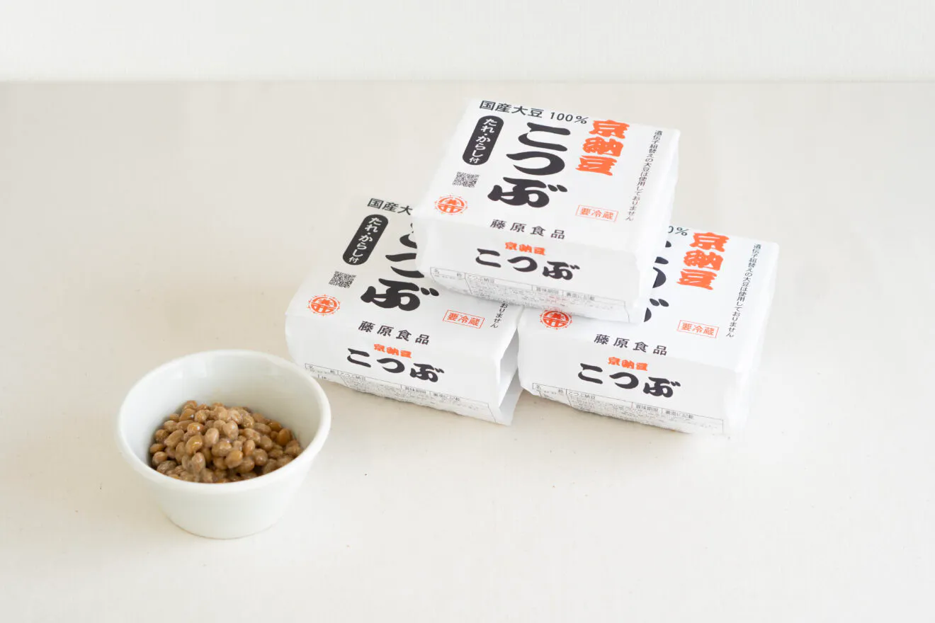 京都ならではの碁盤の目の街並みのなか、ひっそりと佇む納豆屋さんがあります。京都市北区鞍馬口にある藤原食品さん。100年ほど前から納豆をつくり続けています。その名も「京納豆」。