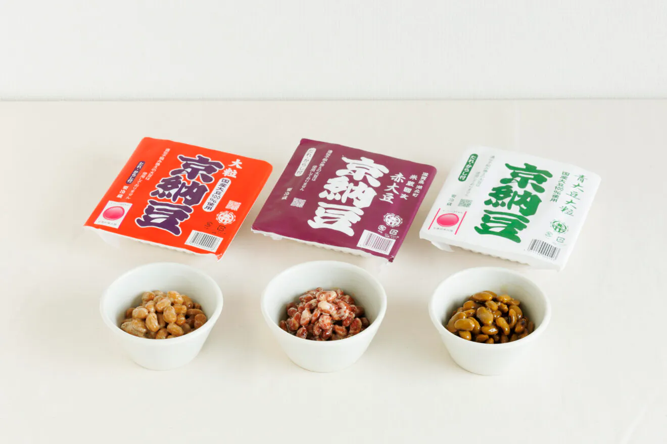 定番の白大豆のほか、青大豆、赤大豆など、いろいろな種類があるのも京納豆のおもしろさ。藤原食品4代目・藤原和也さんは、「大豆ごとの味わいがある。そのちがいを楽しんでほしい」と言います。