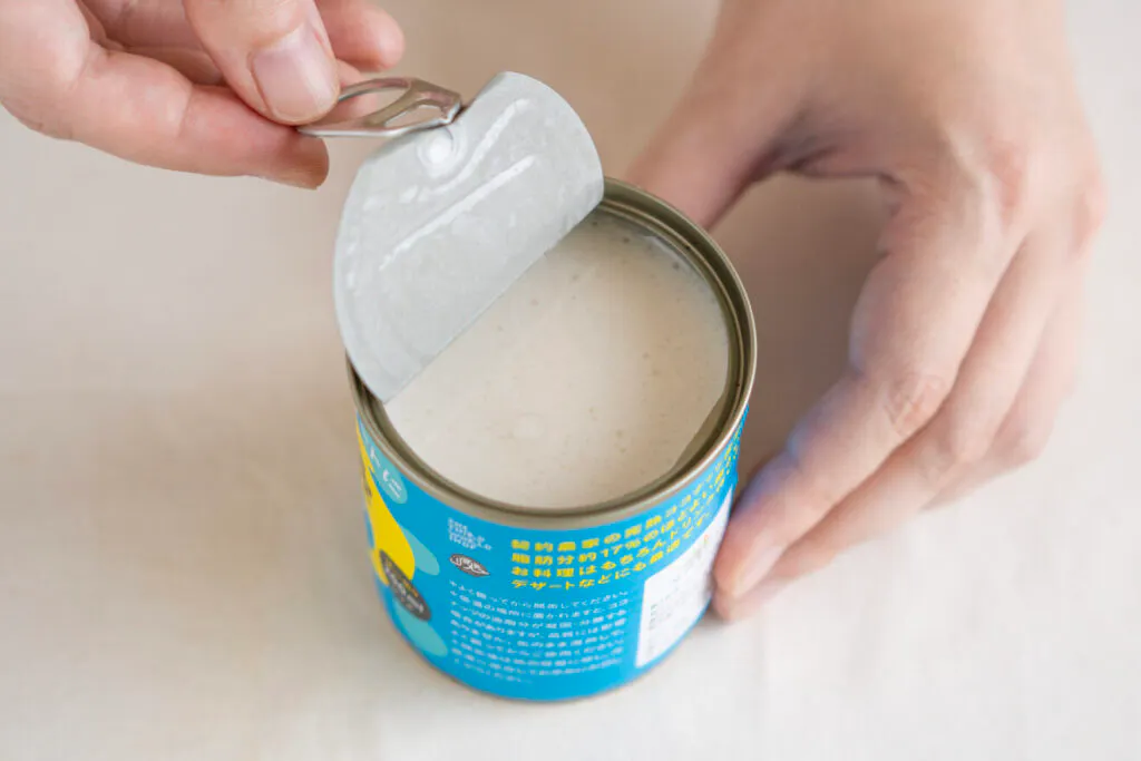酸化防止剤や漂白剤は不使用。脂肪分17%で、さらりとしていて程よいミルク感と、ココナッツのやさしい香りが特徴です。