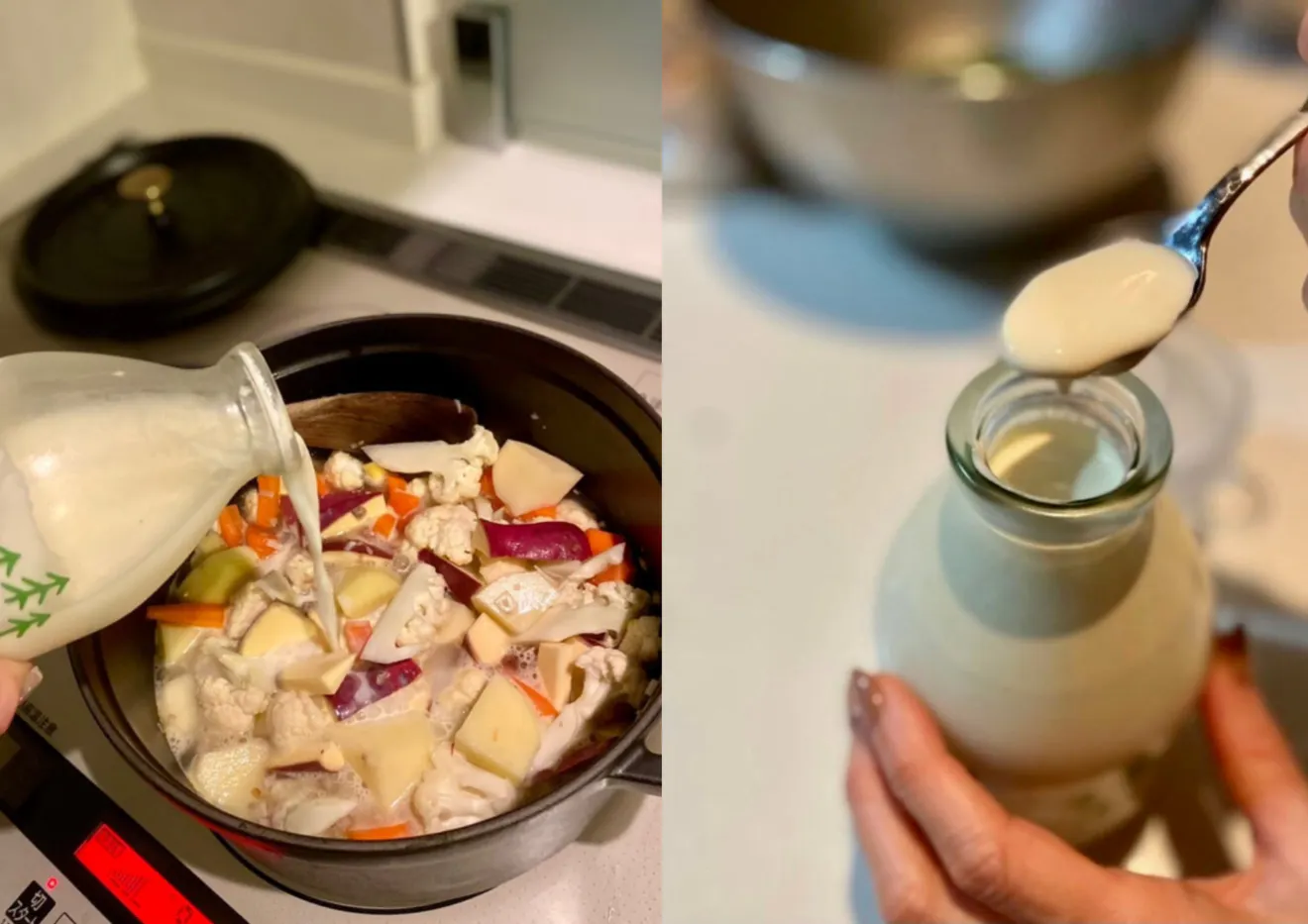 友人から、時間が経つと大きな脂肪球が上がってきて、お互いにくっついて、クリーム状になると聞き、到着後は瓶を振らずに置いておきました。本当に生クリームが出現! 瓶の上のクリームをかきだして、ミルクを飲むと思っていたよりも後味さっぱりで、ゴクゴク飲める。まったりと腹にたまって居座るのではなく、すーっと消えていくようで、これは美味しい! すくいあげたクリームたちはチキンのクリーム煮やパスタに使いました。ミルクはサラサラシチューに。普段のクリームシチューとはちがって、さらりとミルクの旨みがダイレクトに飛び込んできて、重くない! 今後もずっとこれで作りたくなるくらい、美味しかったです。(坂ノ途中アンバサダー @nakayaboi さん)