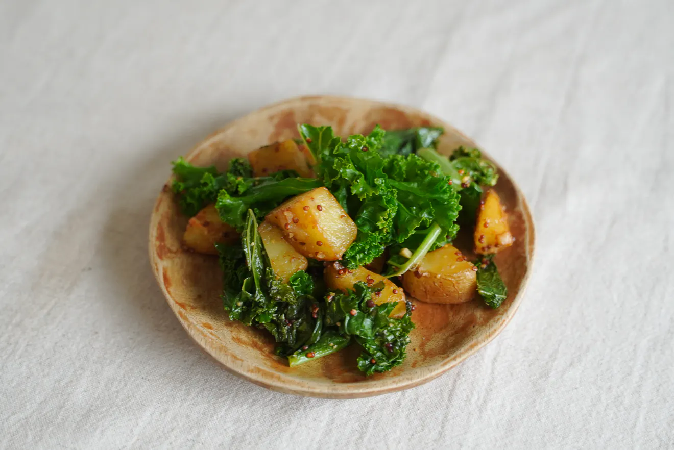 相性の良いじゃがいもとケールを、風味豊かなソテーにしました。