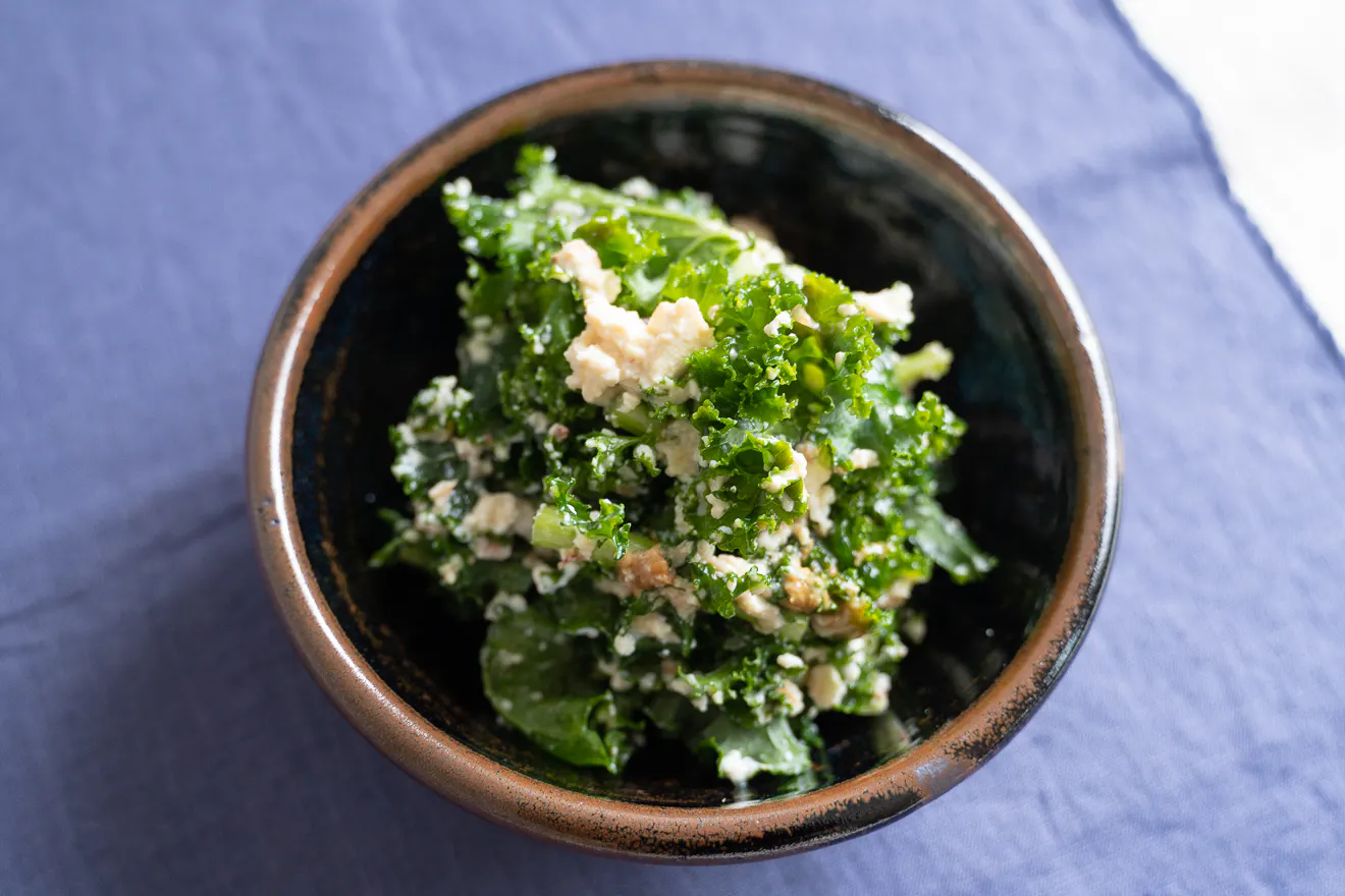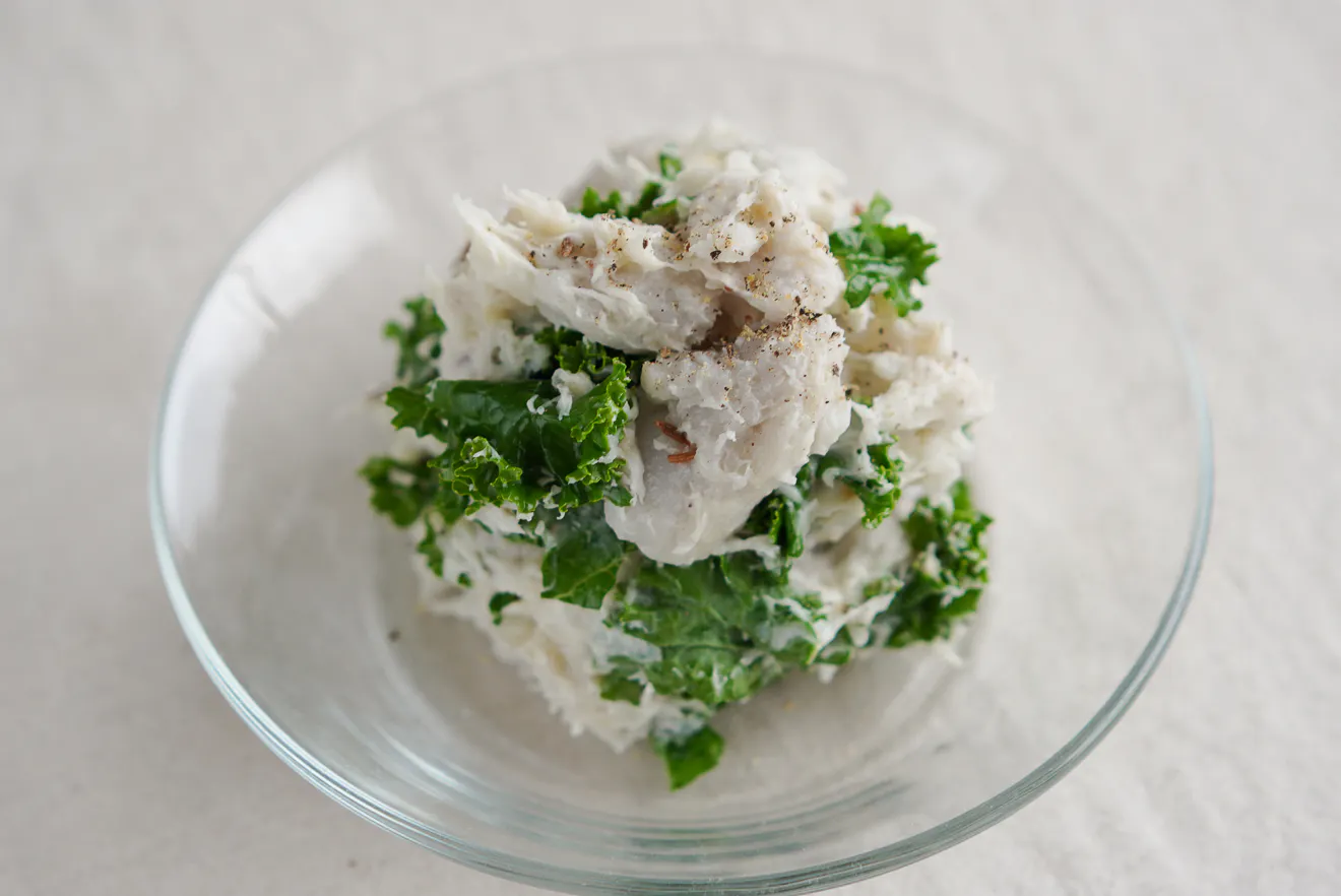 ねっとりとしたさといもに、フレッシュなカーリーケールを加えて、軽やかな食べごたえに。