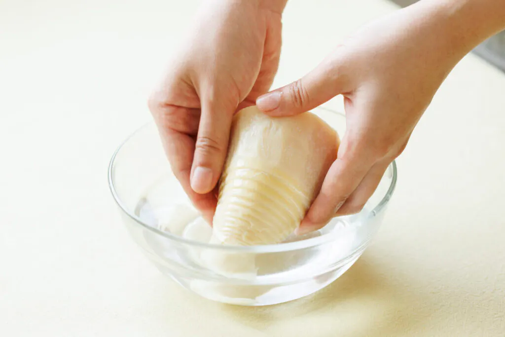 あく抜きがしてあり、すぐにお料理に使える水煮。水で洗い、適当な大きさに切ってお使いください。和泉農園さんのおすすめは、オリーブオイルとにんにくをたっぷり使った、たけのこのペペロンチーノ。シャキッとした食感と豊かな香りが楽しめますよ。そのほか、天ぷらや炊き込みご飯、お味噌汁などにもどうぞ。