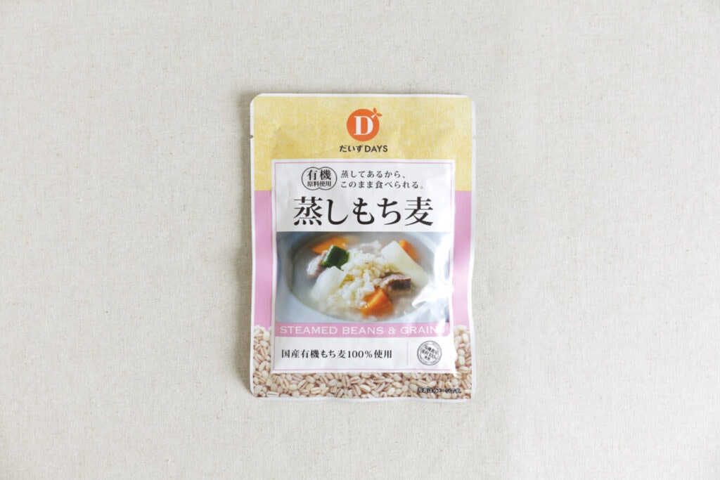 彼らの商品の中でも人気の、蒸しもち麦をお届けします。国産のもち麦を、そのまま食べられるようにやわらかく蒸し上げました。