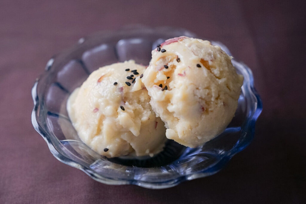 お野菜を蒸して潰し、甘酒と豆乳を混ぜ、冷やしかためれば、こっくり甘いアイスのできあがり。濃厚な口あたりながら、後味はさらりと軽やかで、ひと口、またひと口とスプーンがすすみます。
