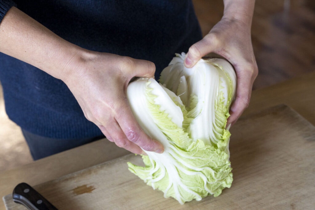 ※白菜の場合は、根元の軸を残したまま4等分に切ります
