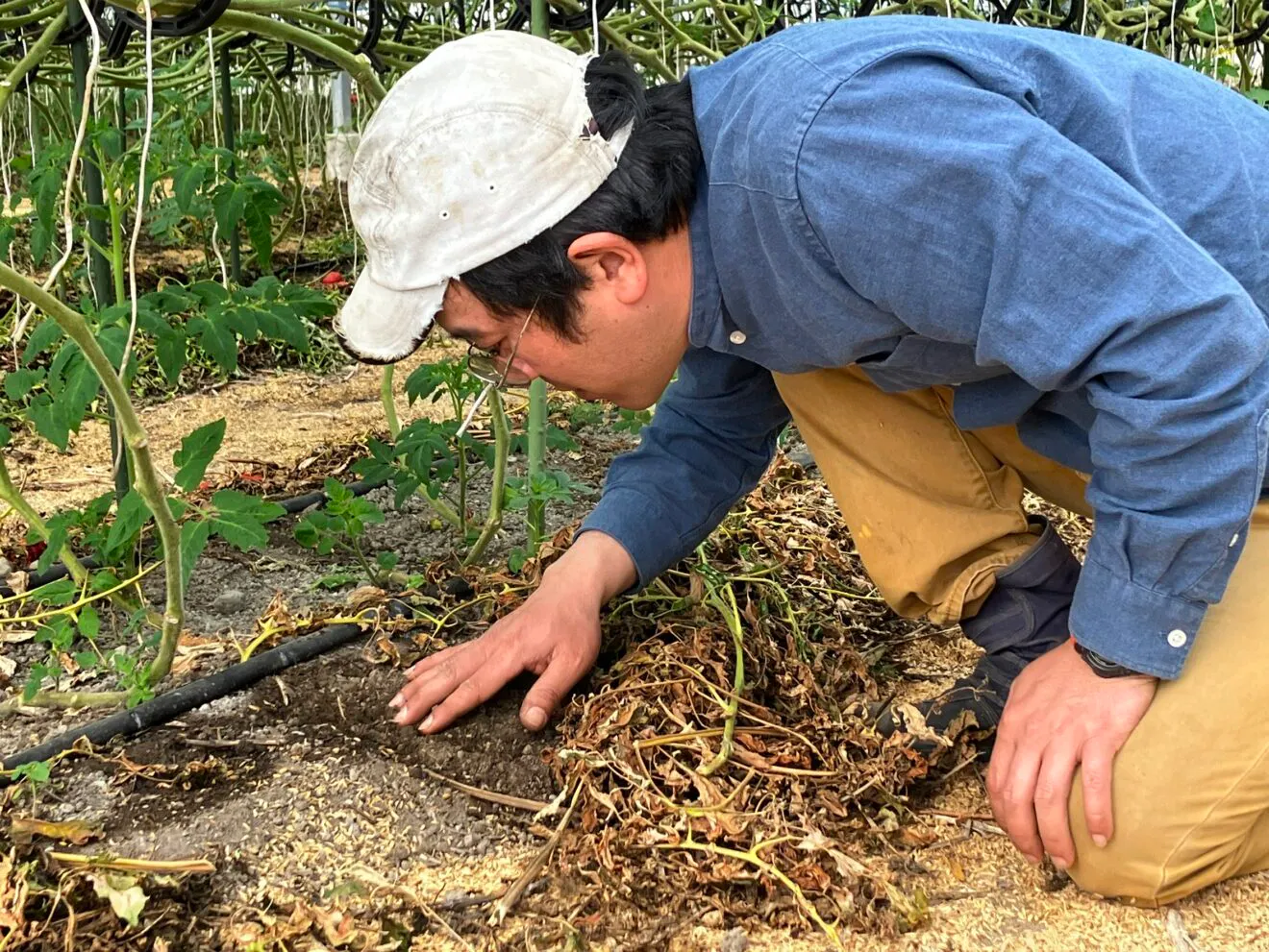 「トマトの元気がないと、僕も元気がなくなるんですよね。お客さんからすると、実がトマトだけれど、僕からしたら根っこから茎、葉っぱ、そして実、全部がトマト。毎日様子を見て、それぞれが元気かなって確認して、必要なだけお世話しています」