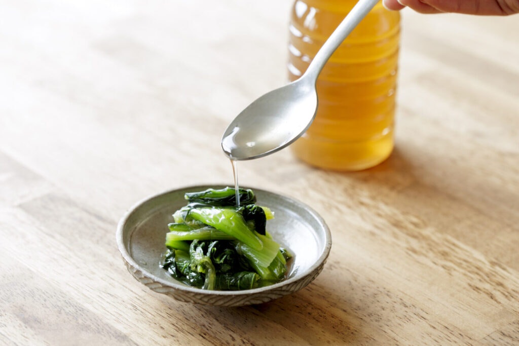 いつものおひたしや炒め物の仕上げにも。気軽にお使いいただける白梅酢です。