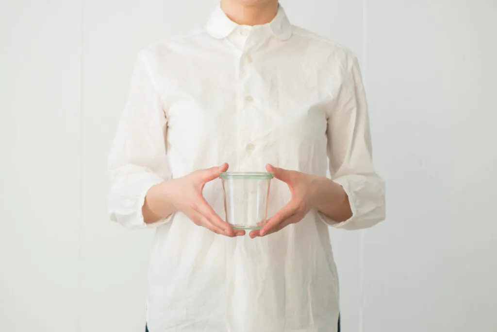 WECKの容器は、材料にリサイクルガラスを50~70%使っています。ほんのりとした薄緑色は、着色していない、ガラスそのものの色。しっかり厚みがあり、飾らない親しみやすさと、頼もしさが感じられます。
