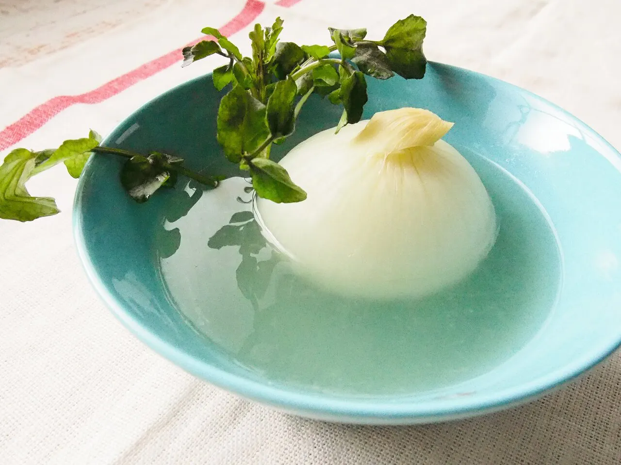 みずみずしい新玉ねぎをそのまま。甘みたっぷりなスープです。