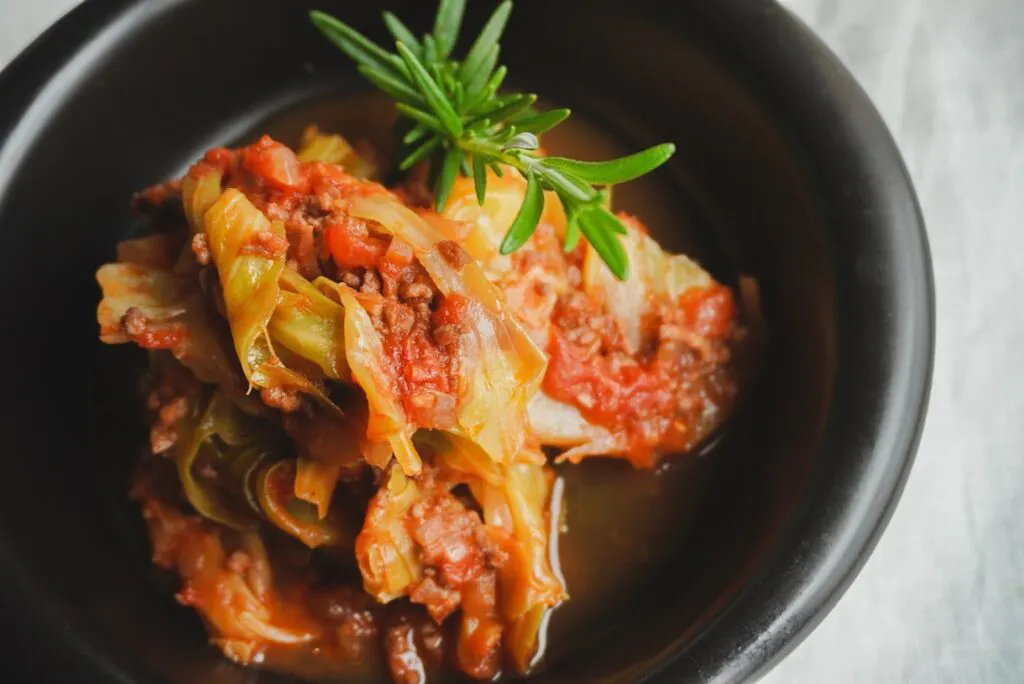 キャベツの甘みをじんわりと感じる、やさしい旨みのミートソース煮。