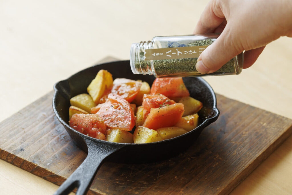 オムレツの味付けに、ハーブソルトをひとさじ。
